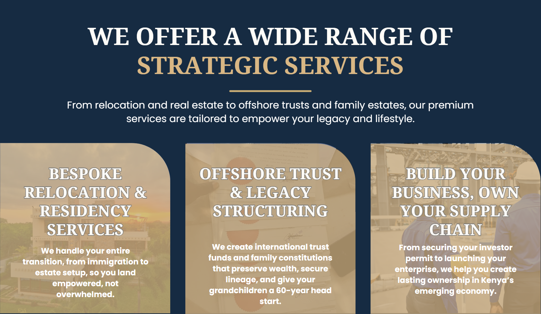 From relocation and real estate to offshore trusts and family estates, our premium services are tailored to empower your legacy and lifestyle.