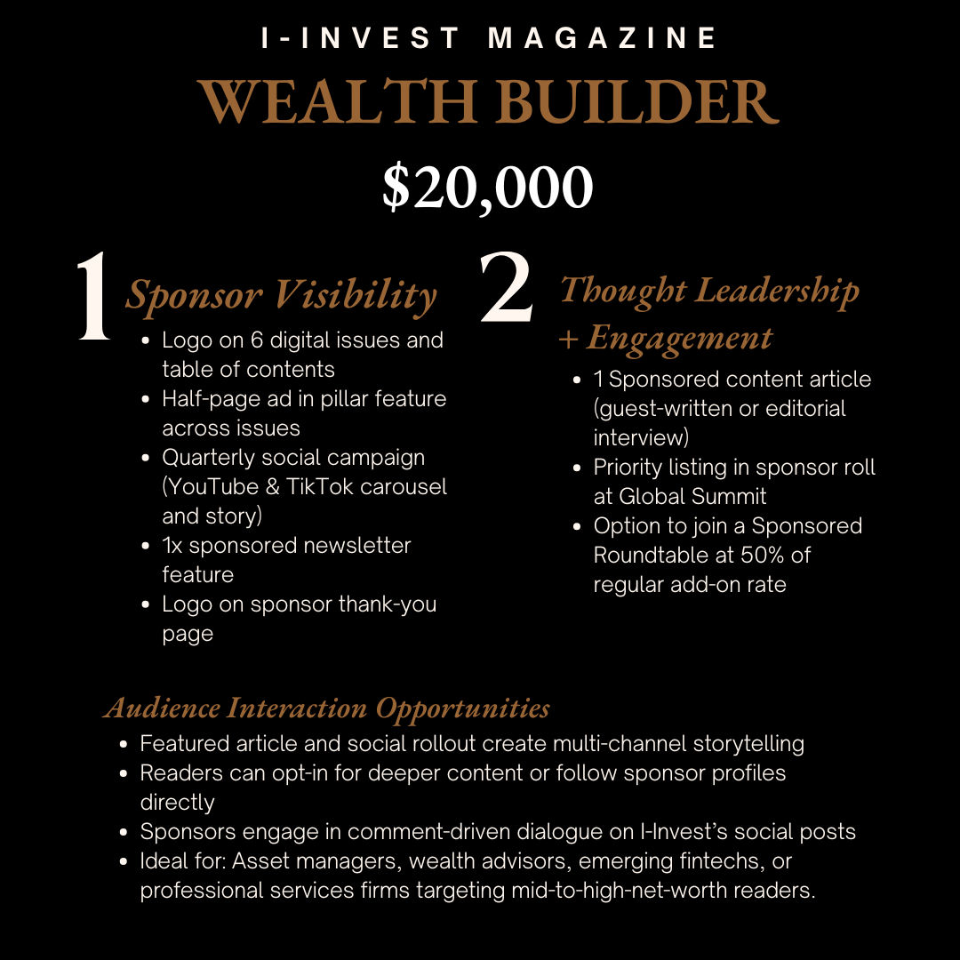 | Wealth Builder Gold | $20,000 | Article Leads | 150,000+ | Guest Feature | Social, Summit Listing |