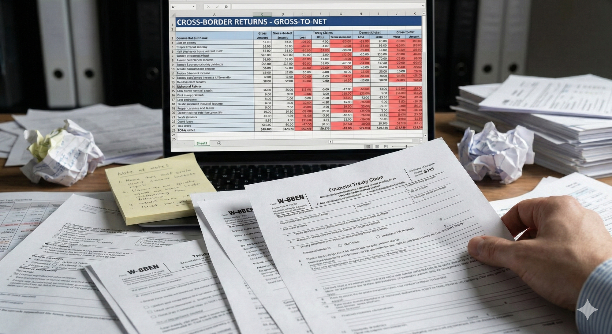 Cross-border returns often die by a thousand cuts: withholding tax, missing forms, rejected treaty claims, and slow reclaims. Model gross-to-net by income type, treaty position, and documentation. Use the WHT engine and the Modeling Sheet.